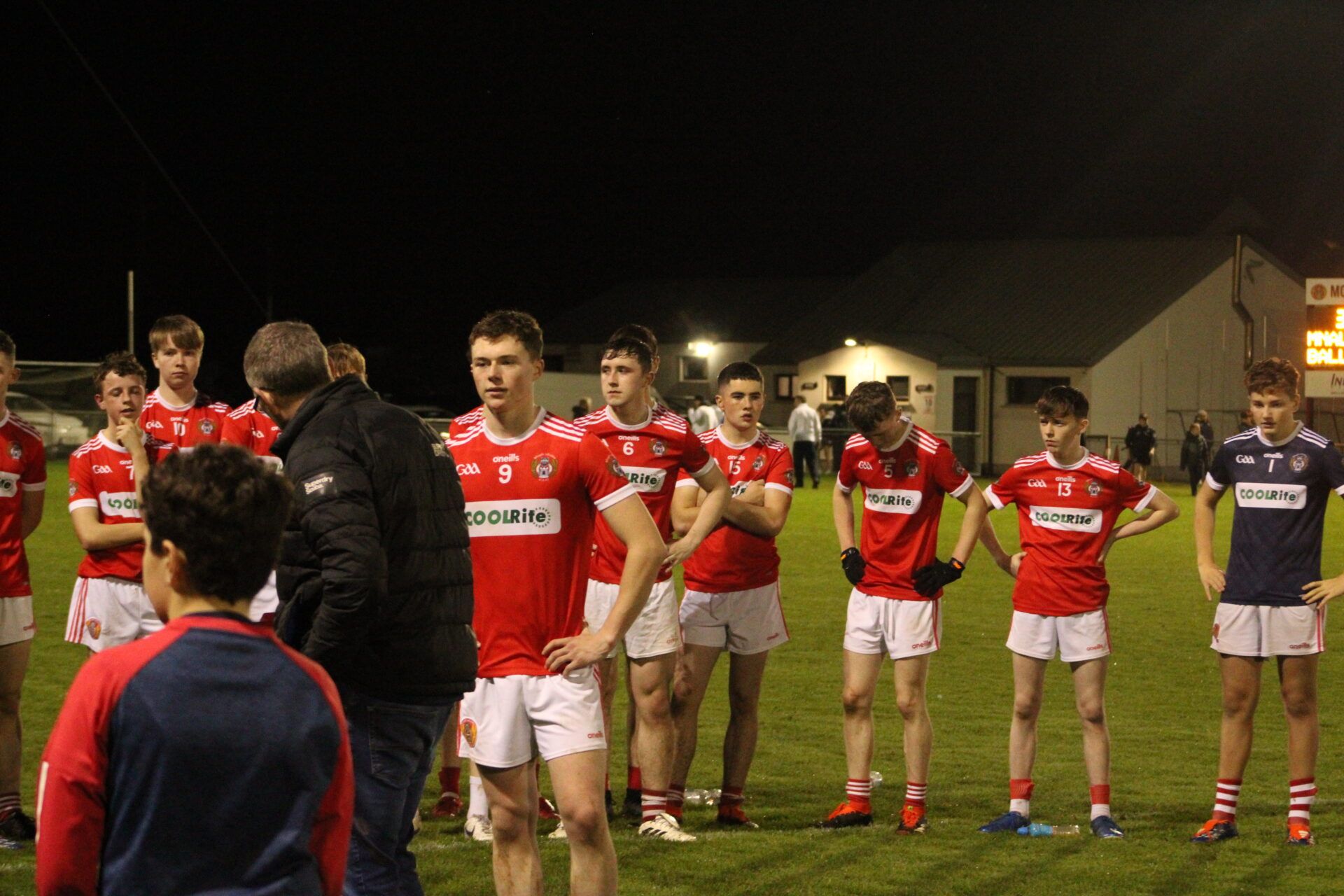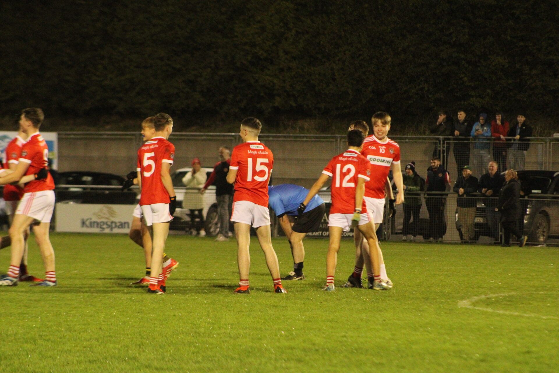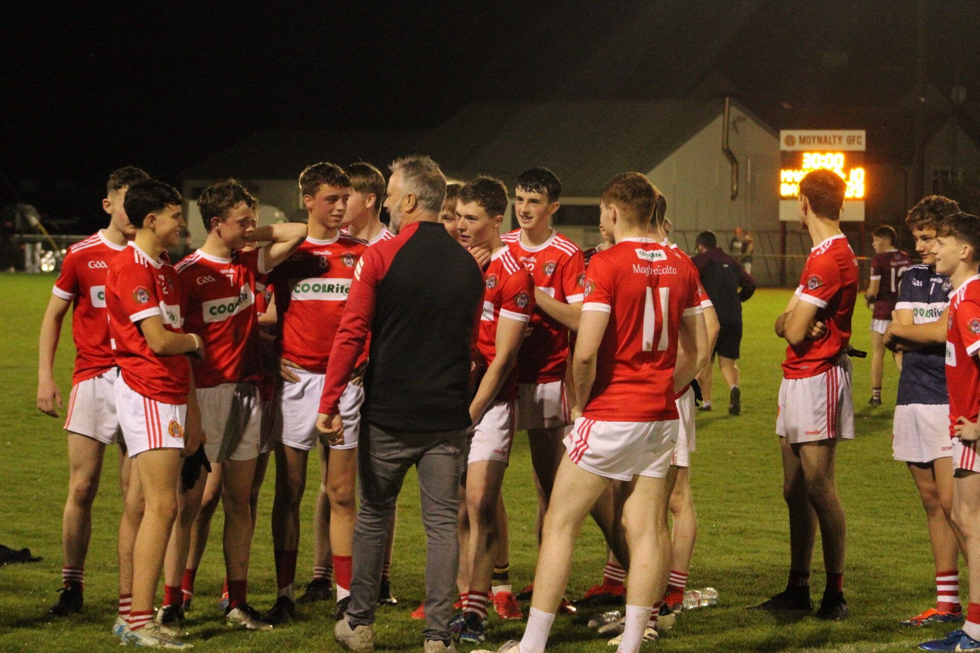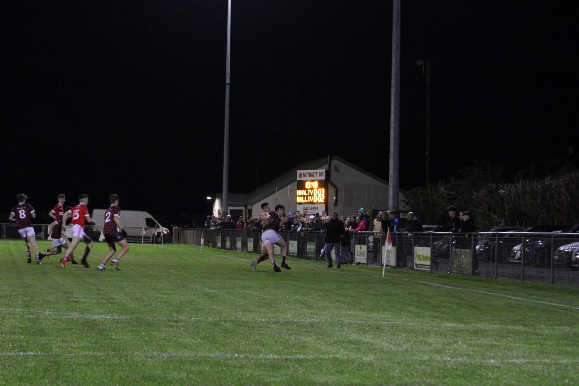 Moynalty started well with an early Eoin Gilsenan point settling them into the game. The teams traded early scores after that before Moynalty took control of the game, with some fine team passing moves ending in scores for Aaron Lynch, Sean Cassidy and Danny Gorman. Moynalty defended well during this time tackling strong with Stephen Cassidy, Ewan Gilsenan and Jack Kavanagh forcing turnovers. Will Smith made an instant impact after coming on following an unfortunate injury to Daire Conlan, as he finished the ball past the Ballivor goalkeeper. Late scores from Shane Bennett, whose surging runs from deep caused Ballivor problems all night, and Leo Kavanagh gave the lads a six point half time lead.