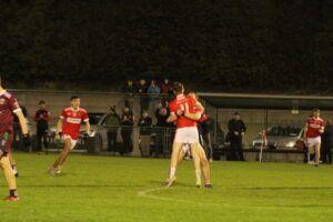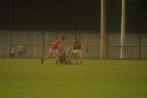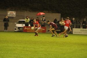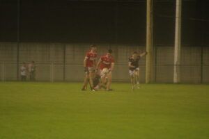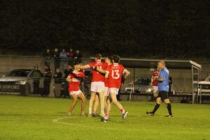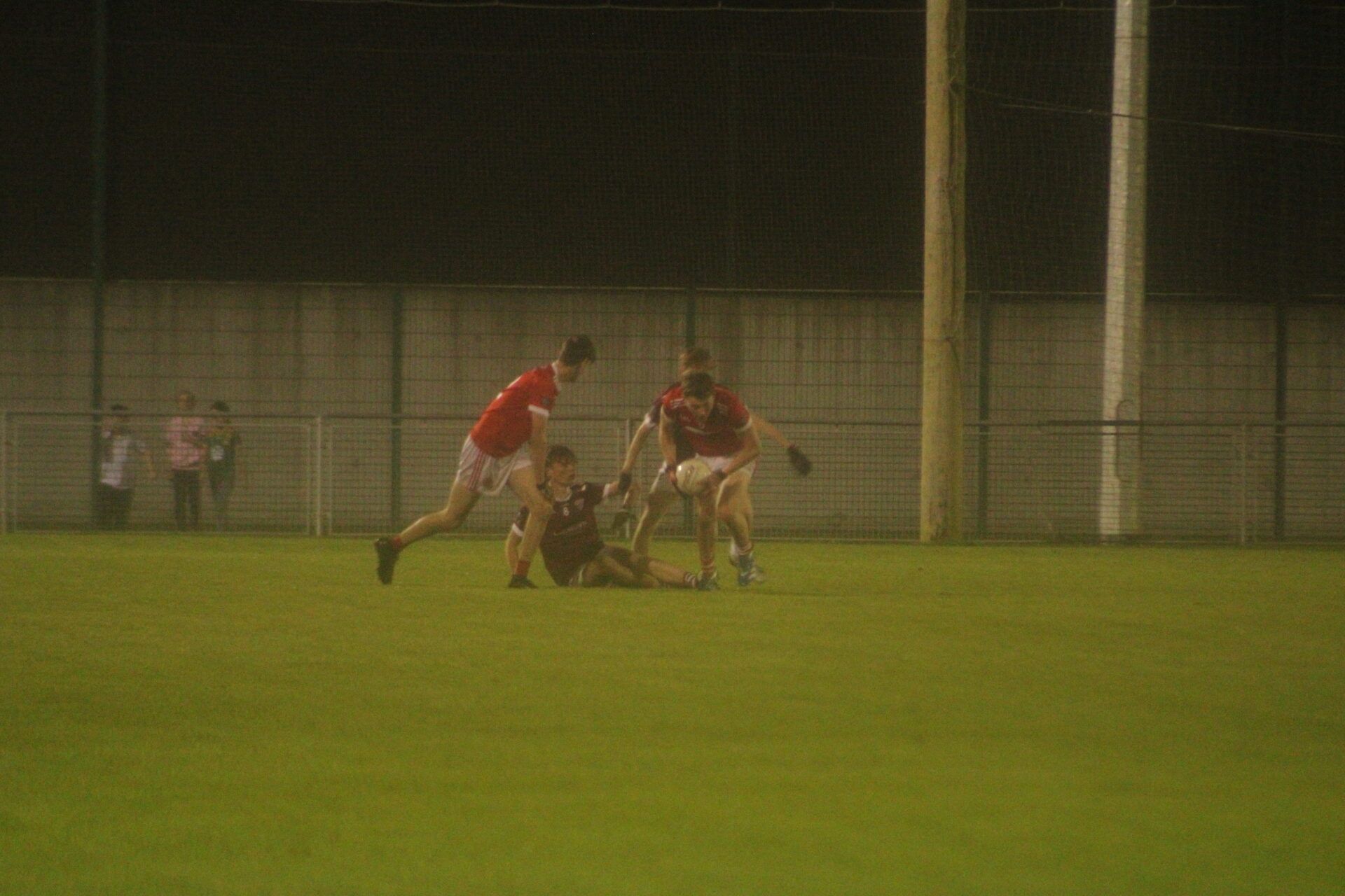 Ballivor started the second half the strongest and within a few minutes had the Moynalty lead down to 2 as they scored a quick goal and point. Shane Bennett responded with a fine long range effort. Ballivor continued to find scores easier to come by and soon took the lead when they got their second goal. Moynalty rallied and after a fine catch from David Daly, who was outstanding in midfield throughout, the ball ended up with Eoin Gilsenan who broke free from the Ballivor defence to blast into the bottom corner. As the rain continued to fall and the tension increased, scores became harder to find, James McCabe made a point blank save to keep Moynalty in the game. Aaron Lynch pointed to put Moynalty ahead by one before Ballivor soon leveled as the game entered injury time. With extra time looking likely, Moynalty were awarded a late free that Gilsenan coolly slotted over the bar with the last kick of the game to spark scenes of celebration across the pitch.